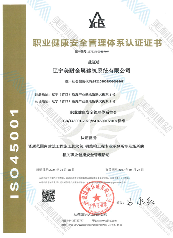 遼寧美耐金屬建筑系統(tǒng)有限公司位于遼寧(營(yíng)口)沿海產(chǎn)業(yè)基地,專(zhuān)注于預(yù)制金屬建筑系統(tǒng)領(lǐng)域,是一家集工業(yè)建筑設(shè)計(jì)、制作、施工及相關(guān)的技術(shù)咨詢(xún)與服務(wù)為一體的綜合性服務(wù)企業(yè)。作為國(guó)家鋼結(jié)構(gòu)協(xié)會(huì)會(huì)員、中國(guó)建筑金屬結(jié)構(gòu)協(xié)會(huì)會(huì)員單位與國(guó)家高新技術(shù)企業(yè),美耐建筑集建筑工程施工總承包、鋼結(jié)構(gòu)工程專(zhuān)業(yè)承包等多種資質(zhì)于一身,并擁有22項(xiàng)鋼結(jié)構(gòu)建筑領(lǐng)域?qū)@?項(xiàng)軟件著作權(quán)。